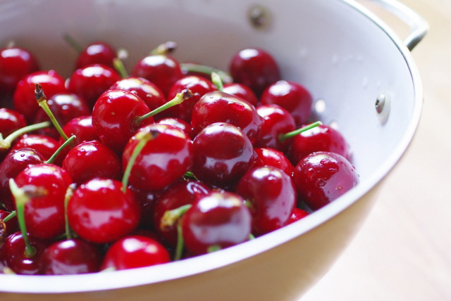 1.さくらんぼは実がつぶれないように水洗いし、水気をふき取ります。
